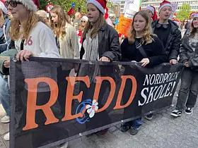 Flere viste derfor støtte til Nordpolen skole ved å ha på seg nisseluer.