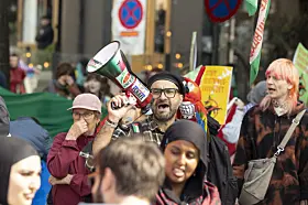 «Styrk demokratiet – knus fascismen!» var årets hovedparole, og flere møtte tidlig opp for å vise sin støtte til Palestina.