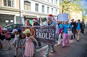 Også lokale Oslo-saker sto på programmet, under parolen «Sats på barn og unge–ikke legg ned Oslos skoler».