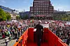 Støre foran folkehavet på Youngstorget.Foto: Heiko Junge / NTB