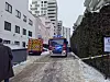 Politisperrebånd foran brannbiler på stedet.Foto: Petter Terning