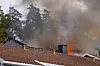 Flammene sto opp fra taket da det oppsto rekkehusbrann i Mortensrudveien lørdag ettermiddag.Foto: Jonas Been Henriksen / NTB