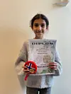 Malak har fått både diplom og 20 mynter som hun kan bruke på skolens 17. mai-feiring.Foto: Hanne Kristin Hop