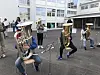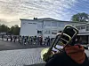 Øvelsen foregår i skolegården til Hasle skole.Foto: Sissel Larsen