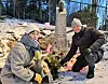 I februar markerte byrådsleder Raymond Johansen og byråd Rina Mariann Hansen at det var 20 år siden Benjamin Hermansen ble drept. Tirsdag ble minnesmerket over han på Holmlia vandalisert.Foto: Christian Boger