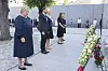 Statsministeren, kronprinsparet, leder for Den nasjonale støttegruppen Lisbeth Røyneland og AUF-leder Astrid W.E. Hoem la ned krans foran minnesmerket i regjeringskvartalet.