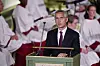 Nato-sjef Jens Stoltenberg brukte i sin tale i gudstjenesten i Oslo domkirke 22. juli hærverket mot Benjamin Hermansens minnesmerke på Holmlia denne uken som et eksempel på at hatet fortsatt eksisterer. Foto: Torstein Bøe / NTB / POOL