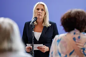 Digitaliserings- og forvaltningsminister Karianne Tung holder tale. I tillegg deltar blant andre stortingsrepresentant for Oslo Arbeiderparti, Kamzy Gunaratnam, statsminister Gahr Støre og styreleder Røyneland.