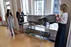 Som en del av 14-årsmarkeringen, vises det frem to personlige gjenstander som 22. juli-senteret har fått låne av etterlatte. Christina Marvold, direktør Lena Fahre og Maria Fonneløp ved 22. juli-senteret står her ved de to gitarene som de har fått låne av etterlatte etter Silje Stamneshagen og Torjus Jakobsen Blattmann. I år åpner en ny modul av utstillingen «Gjenklang – musikken etter 22. juli».Foto: Terje Bendiksby / NTB