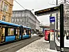Budskap om innstilt trikk lyser opp på sanntidsskjermen av den gamle typen ved Bogstadveien-stoppet i vinter.Foto: Ingri Valen Egeland