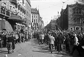 Se bildene: Slik så det ut da folk strømmet ut på Karl Johan da freden kom for 80 år siden