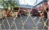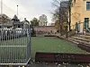 Skolens hovedbygninger ligger bak muren bakerst i bildet. Den lille ballbanen er også en del av skoleanlegget.Foto: Paul Torvik Nilsen