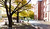 Det er vakkert i skolegården ved Vålerenga skole når lyset skinner gjennom høstløvet.Foto: Åsmund Berge