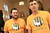 Daglig leder i Røverhuset, Knut Erik Wold og debattleder i Røverradioen, Simen Iskariot Larsen. Budskapet på t-skjortene er klart.