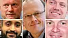 Oslo Aps fem mektigste er alle menn: Byrådsleder Raymond Johansen (øverst til v.), fylkespartileder Frode Jacobsen (midten), bystyregruppeleder Andreas Halse (øverst til h.), varaordfører Abdullah Alsabeehg (nederst til v.) og fylkespartisekretær Øyvind Slåke (nederst til h.).Fotomontasje: VårtOslo / NTB / Wikimedia Commons