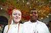Vilja Lande (t.v.) og Abdullah Ouro Agouda fra Sagene skole på Redd Barnas Fredsprisfest på Nobels Fredssenter. Foto: Terje Pedersen / NTB scanpix