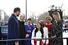 Kronprins Haakon og kronprinsesse Mette-Marit ankommer Redd Barnas Fredsprisfest på Nobels Fredssenter mandag. Kronprinsparet ble tatt i mot av blant andre ordfører Marianne Borge og barn fra Sagene skole. Foto: Terje Pedersen / NTB scanpix