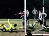 Abel William Stensrud i rødt skårer mot Nesodden i opprykksfinalen i fjor høst. Foto: Bjørnar Morønning