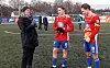 En ung og litt beskjeden Abel Stensrud (i midten) blir sammen med Fredrik Berglie intervjuet av Nora Johnsen etter 12- 0 seieren over Rosenborg i november 2021Foto: Anders Høilund