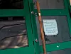skilt på dørene og oppfordret elevene til å bruke en annen inngang for å unngå