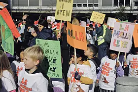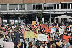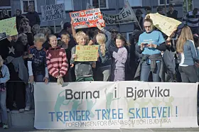 Det er onsdag store demonstrasjoner i Borggården utenfor Rådhuset, etter det borgerlige byrådets forslag om å legge ned, omstrukturere og flytte elever fra en rekke skoler slik utdanningsetaten har foreslått.