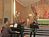 Organist er Rand Elise Rosendahl som har selskap av Eline Monrad Vistven på saksofon. En liten saksofon som følger oss gjennom salmetonene og en stort, dyp mørk en som lager rå lyd. Om jeg hadde hatt bedre bakgrunnskunnskap om musikk, så kunne jeg sikkert gitt en strålende anmeldelse hvor jeg kunne si mer enn at trekkspillet var lyseblått. Og saksofonen diger og grovlyda, men den kunnskapen har jeg ikke. Så vi får nøye oss med at jeg likte det jeg hørte. Det var nært, ekte og vakkert og sjela mi kosa seg.