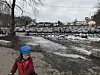 Som en sommerdag på parkeringsplassen på Huk, å dømme etter antall biler. Men Johan Brox Widerøe (5) har med seg sykkel, og da må han ha hjelm.Foto: Paul Torvik Nilsen