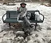 Anya Rasmussen har tatt plass på en benk, ved busstoppet ved parken på Gråbeinsletta nær Sagene kirke. Turkamerat er hunden Kokos. Hun bor på Adamstuen, men liker å komme opp tikl Sagene.