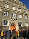 Det var mange som ville inn å se seg rundt på Veterinærhøgskolens gamle tomt da Oslo MDG inviterte til omvisning tidligere i vinter.Foto: Privat