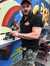 Christian Rene Wold signerer en av kriminalbøkene sine. Foto: Vegard Velle