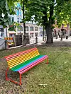 En regnbuefarget benk