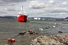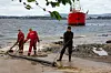 Det er mannskapet på båten Straumvik som sørger for å jevne ut de steinete strendene på Huk, Sørenga sjøbad og Sollerudstranda.