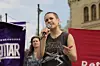 — Som alle andre her egentlig også har sagt, så mener vi at frihet fra vold er en grunnleggende forutsetning for kvinnefrigjøring. Vi blir aldri likestilte så lenge Norge fortsetter å være et paradis for voldtektsmenn, sier Cathrine Linn Kristiansen fra Feministisk Initiativ.