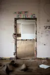 Rivingen er påbegynt på Ruseløkka skole. Over døra står det Minda og 9A. Foto: Morten Lauveng Jørgensen