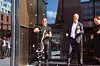 Åpningen ble feiret med sabel og champagne. Petter Stordalen med adm. dir. i Höegh Eiendom, Eirik Thrygg, og hotelldirektør Sara Jensen, også med godt grep om hver sin champagneflaske.Foto: Akers Avis Groruddalen