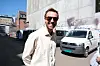 mann opp på arbeidet Hugo Elias utfører fra liften. Hugo går under