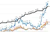 Grafene viser koronautviklingen ved OUS siden september i fjor. Svart viser koronadødsfall, blått koronainnleggelser, oransje er intensivpasienter med covid-19 og grått er koronapasienter koblet til respirator.