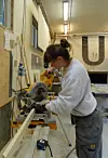 Arkitekt Aina Sand Telhaug arbeider med modell. Foto: Privat