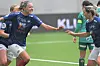 Maruschka Waldus (t.v) jubler over å gi gitt Vålerenga-jentene ledelsen 1-0. Hun gratuleres av lagvenninne Dejana Stefanovic. Foto: Christian Boger