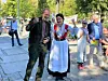 Artist Ole Paus kommer også på fakkeltoget 7. desember. Her avbildet med Anja Cecilie Solvik, leder av Bunadsgeriljaen, på sykehusmønstring i Spikersuppa i august 2021.Foto: LO i Oslo