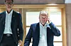 Helsebyråd Robert Steen (t.v) og byrådsleder Raymond Johansen (Ap) på vei for å offentliggjøre nye, strengere koronaregler for oslofolk.Foto: Terje Bendiksby / NTB