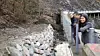 Til venstre ser vi kampesteiner som har blitt plassert ut der hvor det var rasfare, rett ved hengebrua. Foto: Tarjei Kidd Olsen