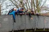 På Kjærlighetsbrua ved Kunsthøgskolen står en gruppe skuelystne og speider etter laks som gyter.