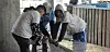 Stolte ungdommer tester resultatet av tre dagers arbeid på Akerselva.Foto: Christian Boger