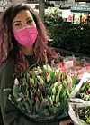 Sarah Stenholm er nødt til å la seg munnbinde i sin omgang med blomster og kunder, men Vårt Oslos fotograf ville se henne smile.Foto: Paul Torvik Nilsen