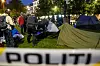 Flere ganger har teltet hans blitt fjernet av politiet etter at han har nektet å følge pålegg om å pakke sammen sakene.