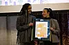 Philip Rynning Coker (OMOD) og Ida Thorstensen De Leon (Oslo kommune) mottok prisen under en prisutdeling på Rådhuset.Foto: Olav Helland