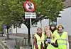 For å markere den nye skiltingen hadde foreldrene bak Aksjon Strømsveien fredag morgen stilt seg opp ved bommen for å opplyse trafikkens morgenfugler om det nye forbudet.