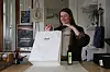 Marte Kirkevold Flatejord er daglig leder i palestinabutikken Al Quds. Her pakker hun varer fra butikken.Foto: Mari Natvig Sandane