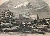 Ukemagasinene kalte bygningen for kongeboligen. Navnet slott kom ikke i bruk før senere. Bygningen sto ferdig i 1848, og lå da 1500 skritt unna nærmeste bebyggelse.Illustrasjon fra boka